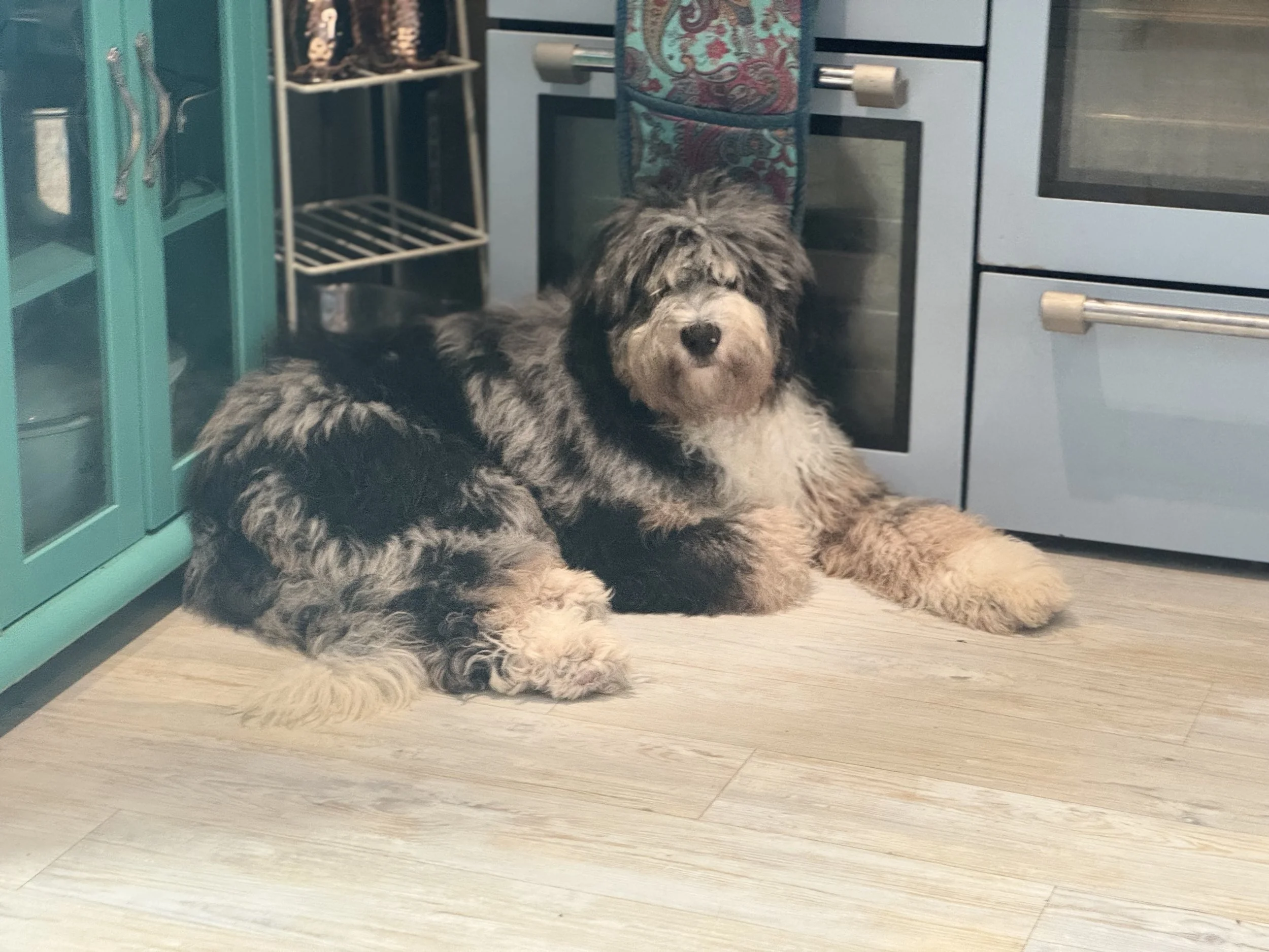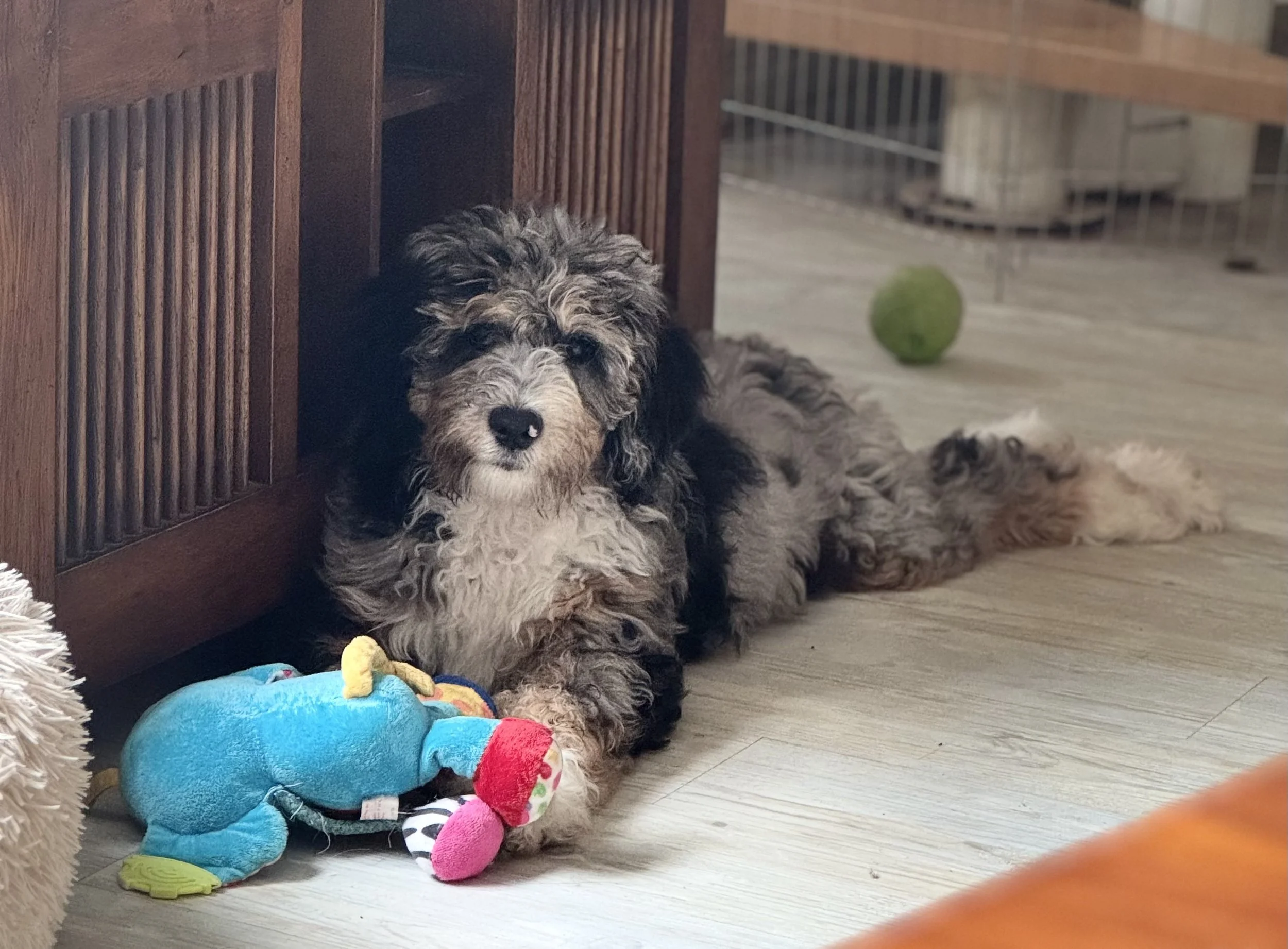 Our oh so pretty Tri Merle Australian Bernedoodle girl ‘CreamofBritish Sweet EffAll’